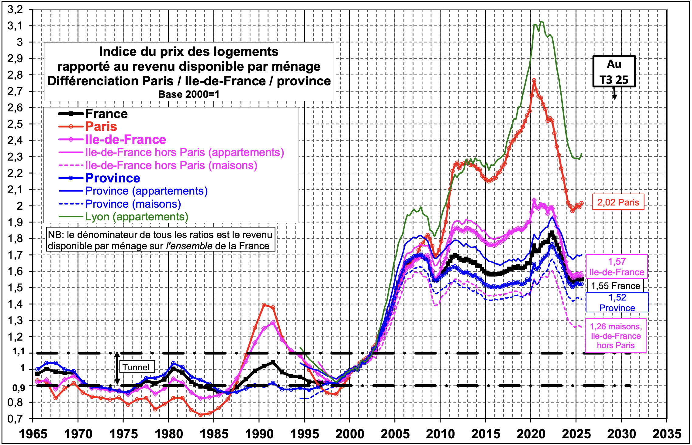 Conséquence : le ratio prix/revenu revient lentement vers son niveau d’équilibre historique.